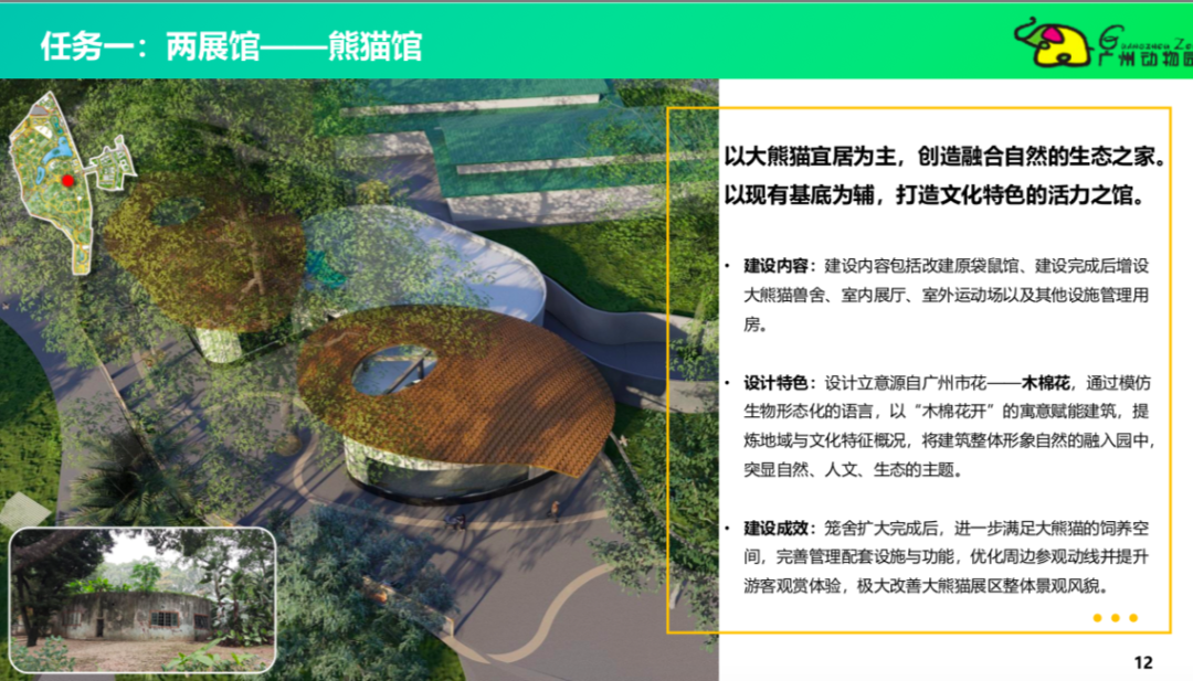 此外,记者还从广州市林业和园林局在官网发布关于《广州动物园系列项目建设策划方案(征求意见稿)》的公示所见,大熊猫馆的扩建工程设计立意将以“木棉花开”的寓意赋能建筑,提炼地域与文化特征概况,将建筑整体形象自然的融入园中,突显自然、人文、生态的主题。而笼舍扩建完成后,会进一步满足大熊猫的饲养空间,完善管理配套设施与功能,优化周边参观动线并提升游客观赏体验,极大改善大熊猫展区整体景观风貌。