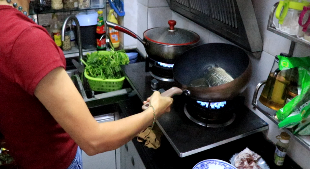 此外,她还分享了自己最喜欢的菜肴之一——泡椒鲫鱼的制作方法。“要准备的食材有鲫鱼、泡菜、葱姜蒜、豆瓣酱、花椒等。将鲫鱼煎至两面金黄后盛出,再把豆瓣酱和泡椒炒出味,将鲫鱼和这些调料一起放回锅里用水焖几分钟就可以了。”
