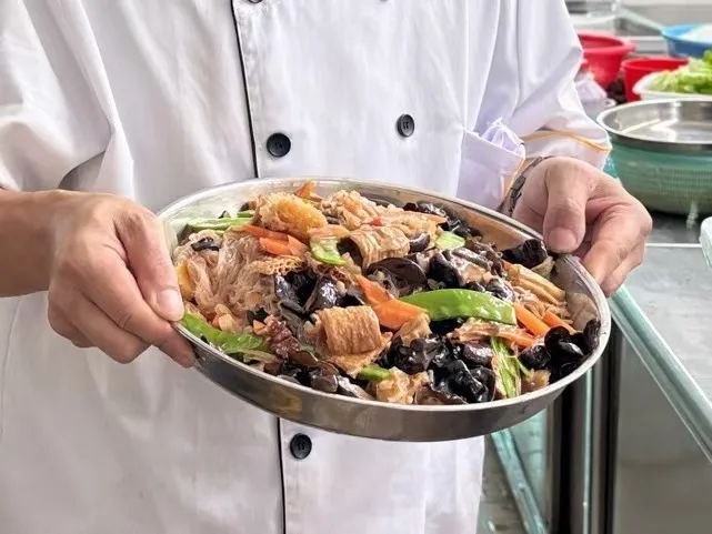 10点左右,威师傅正在做菜,切、炸、焯、炒、焖,不一会儿,一份香气扑鼻的“罗汉斋”就做出来了。威师傅说,罗汉斋看似简单,由于配料多、流程复杂,一般要每个材料都单独炒一次保证入味,最后再放一起焖间,这样做出来的罗汉斋才是最好味道的。