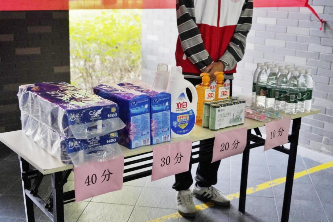 走进南沙街道云山诗意小区的垃圾投放点,智能投放垃圾桶整齐排成一排;垃圾桶对面的长桌上,摆放着卫生纸、洗衣液、牙膏牙刷等日用品,每一栏都有对应积分标价。不少下楼投放垃圾的居民正手持积分卡,在站桶员的指引下有序等待兑换奖品。