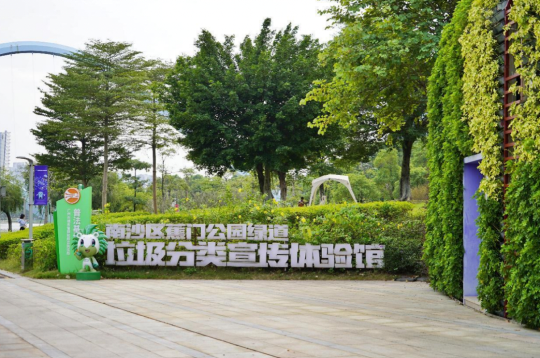 蕉门公园绿道垃圾分类体验馆于2020年1月揭牌开幕,占地面积约200平方米,集科普教育、游戏互动、智能体验、网络直播等沉浸式体验于一体,通过对外科普教育服务、创新趣味体验服务、垃圾分类投放实景演示体验服务、网络直播服务4个互动体验区,引导参观者了解生活垃圾的产生、分类收集运输、分类资源化处理的全过程,在探索体验中深入了解垃圾分类工作模式。