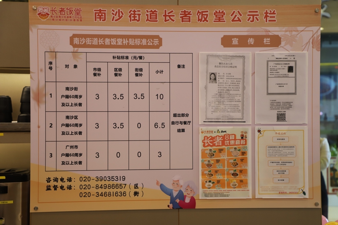 南沙街道有关负责人告诉记者,社区饭堂采取“政府补一点、企业让一点、个人出一点”的优惠模式,让老年人群体以最实惠的价格享受到高品质的餐饮服务,广州市户籍、南沙区户籍、南沙街道户籍长者享受的补贴分别为3元、6.5元、10元。其中南沙街道户籍长者在社区饭堂就餐,每餐可享受由政府提供的10元补贴,配合门店特别推出的优惠套餐,长者的实际负担大幅减轻。