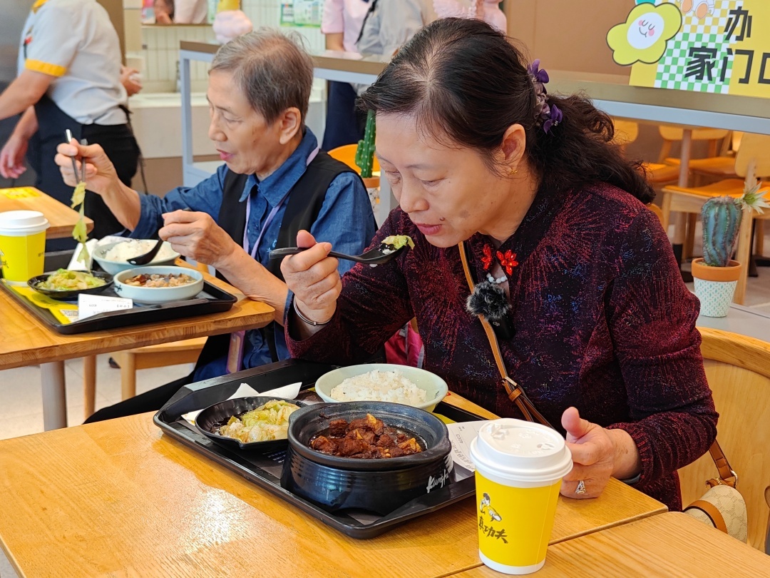 11月1日10:30,位于南沙城的真功夫餐厅便迎来了首批到“长者饭堂”就餐的阿叔阿婆。长者们体验完菜式和用餐环境后,纷纷点赞:“美味营养、干净卫生、方便快捷,很好很放心!”