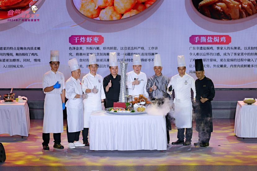 在11月1日晚举办的开幕式上,主办方发布“餐饮产业大数据报告”,深度剖析广州餐饮发展全景、粤菜在中式餐饮市场中的影响力,为餐饮企业经营决策提供重要参考依据。来自广府菜、潮汕菜、客家菜及港澳地区的四位顶级粤菜大师,麦广帆、叶飞、翟丙林、梁奀各自烹饪一道招牌拿手菜,组成一道“四喜”拼盘,首度呈现新颖的“八手联弹”厨艺秀。中国名厨徐嘉乐、德国名厨Rudi鲁迪随后登台上演“中外名厨炫技秀”,展示令人惊叹的烹饪技巧。