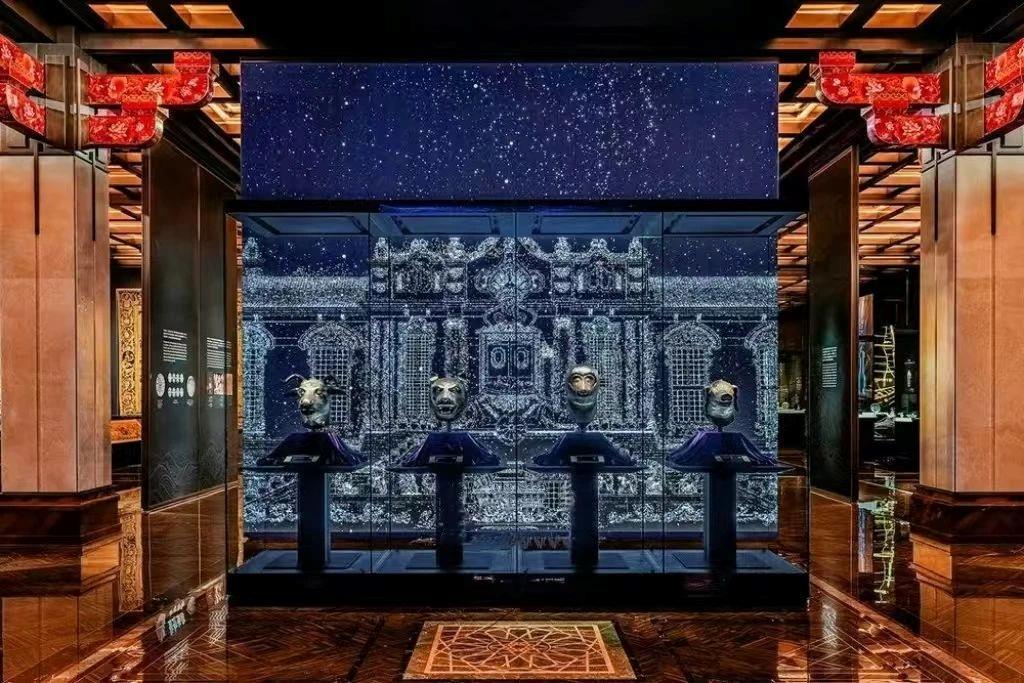 此外,本次展览还将限时展出四尊圆明园兽首铜像文物原件,分别是猴首、牛首、虎首、猪首。据相关负责人介绍,国宝级文物对于场内的安保和储存环境都相当讲究,博物馆内的设施达到了国家一级文物博物馆的相等水平。