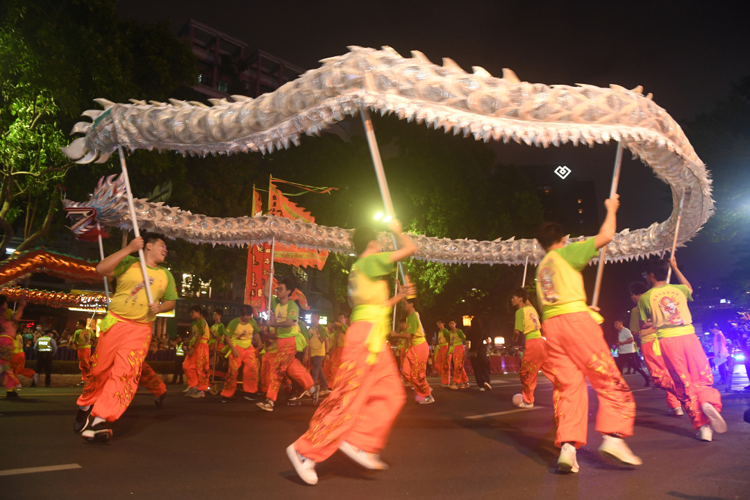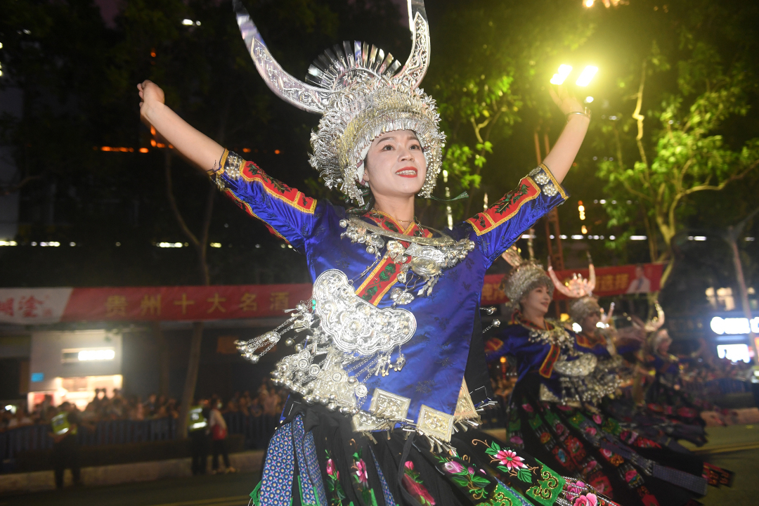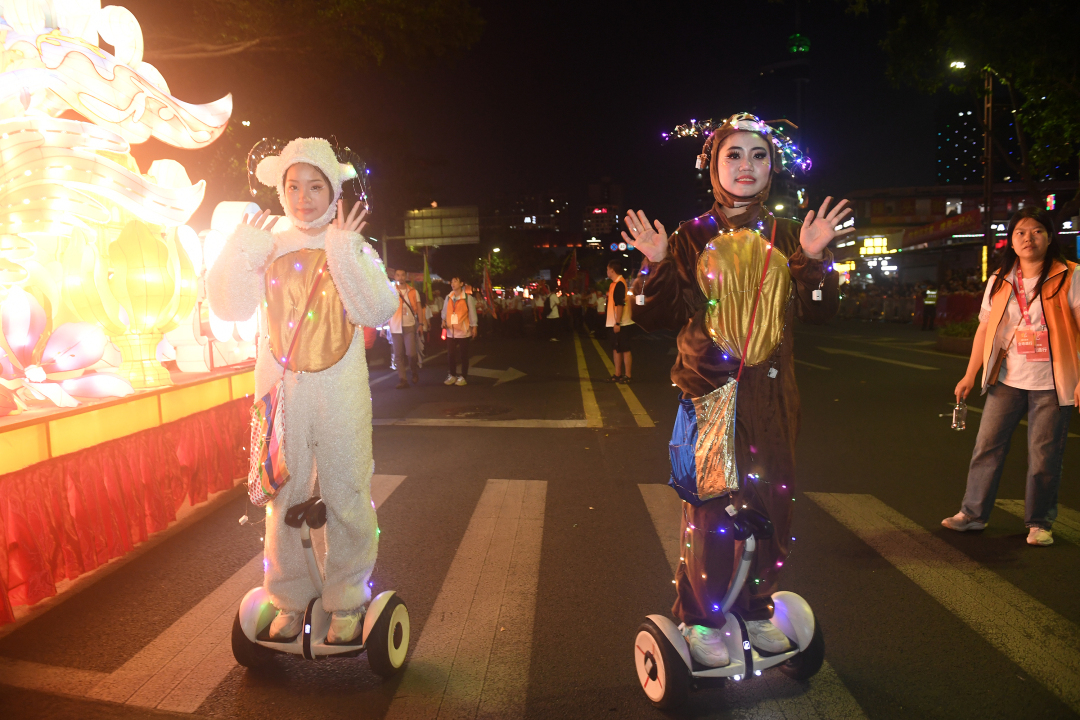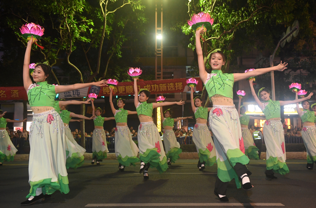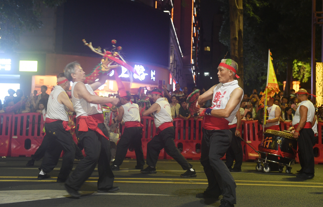 伴随着热闹的锣鼓声,“佛山秋色”信号灯缓缓驶出,一场秋天里的盛会拉开序幕。11月1日晚,佛山祖庙牌坊广场前迎来佛山最大民俗盛会之一秋色巡游。来自粤港澳大湾区、新疆伽师、贵州黔东南州、西藏墨脱、湖南郴州、湘西凤凰等地充满当地风情和民族特色的精彩歌舞,与18辆穿插在巡游队伍里的主题彩车相互辉映,给游客和市民带来一场精彩的视觉盛宴。