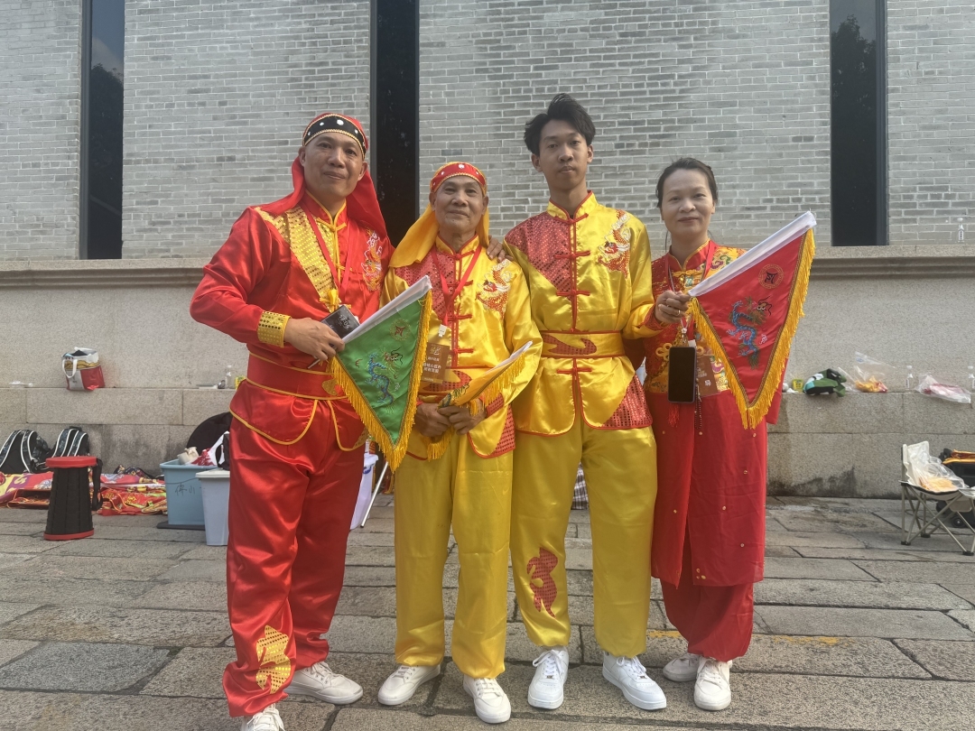 记者了解到,马达明是马良辉的父亲、马浚钧的爷爷。“我很小的时候就跟着父亲学习十番,随后参加全国性的汇演获得了优秀奖。”马达明告诉记者,他参加过四次秋色巡游,最早的一次是1982年的那次秋色巡游,那次的秋色巡游虽然人不多,但是很好、很传统。说到十番的传承,马达明说不仅他的儿子和孙子都在表演十番,他们走进湾华小学定点教十番。在马达明的耳濡目染下,马良辉从6岁起就开始接触十番,到如今已经在十番这项国家级非遗里浸淫了数十年。同样,马良辉的儿子马浚钧在他的熏陶下也爱上了十番。“六年级的时候对十番有些好奇,后来对这些音乐有些感觉,再后来就喜欢上。”马浚钧说,他觉得秋色巡游是个很好的宣传和推广平台。