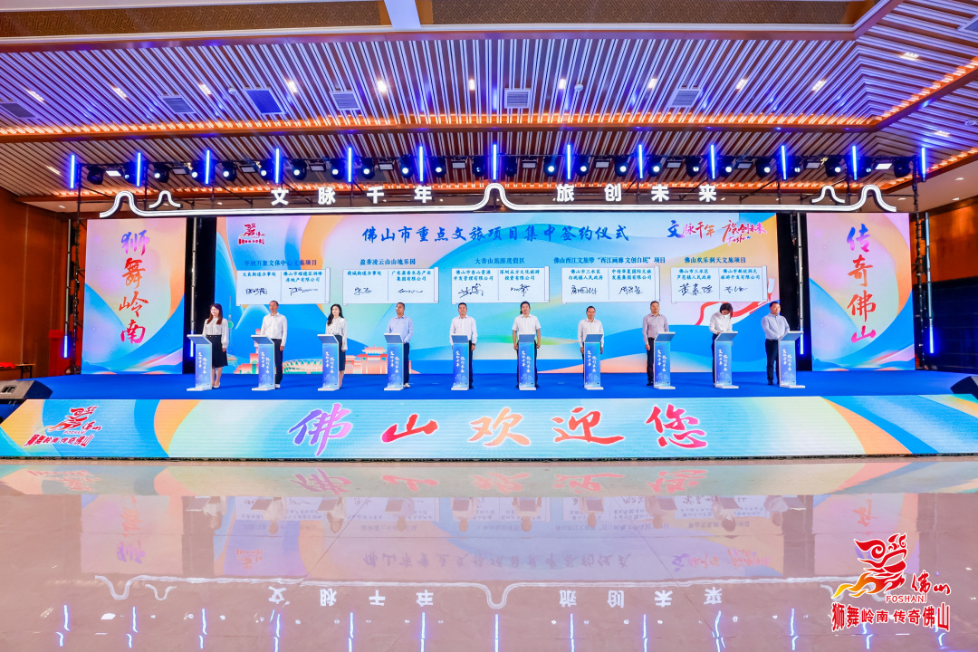 大会当天,全市五区10个佛山市重点文旅项目集中签约,签约金额130.2亿元,包括UIG工坊项目、美里新天地项目、世界功夫小镇(里水)特色文旅项目、千灯湖中轴(大沥片区)文体旅游项目、百荣璟盛文旅项目、华润万象文体中心文旅项目、盈香凌云山山地乐园、大香山旅游度假区项目、佛山西江文旅带“西江画廊 文创白坭”项目、佛山欢乐洞天文旅项目。