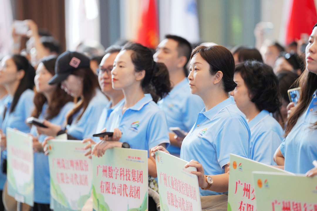 启动仪式现场,奥运冠军、世界冠军前来助阵,彻底点燃职工运动激情。跳水奥运冠军杨景辉宣读倡议书,“全市各行各业的职工朋友们,要做自身健康的第一责任人,做到‘123’——每天运动1小时,掌握两种运动技能,懂看3种体育比赛;全市各级工会,要提升职工体育服务和产品供给能力,增强广大职工群众的获得感、幸福感。”广州市总工会号召全市职工以第十五届全国运动会为契机,积极投身到全民健身热潮当中。