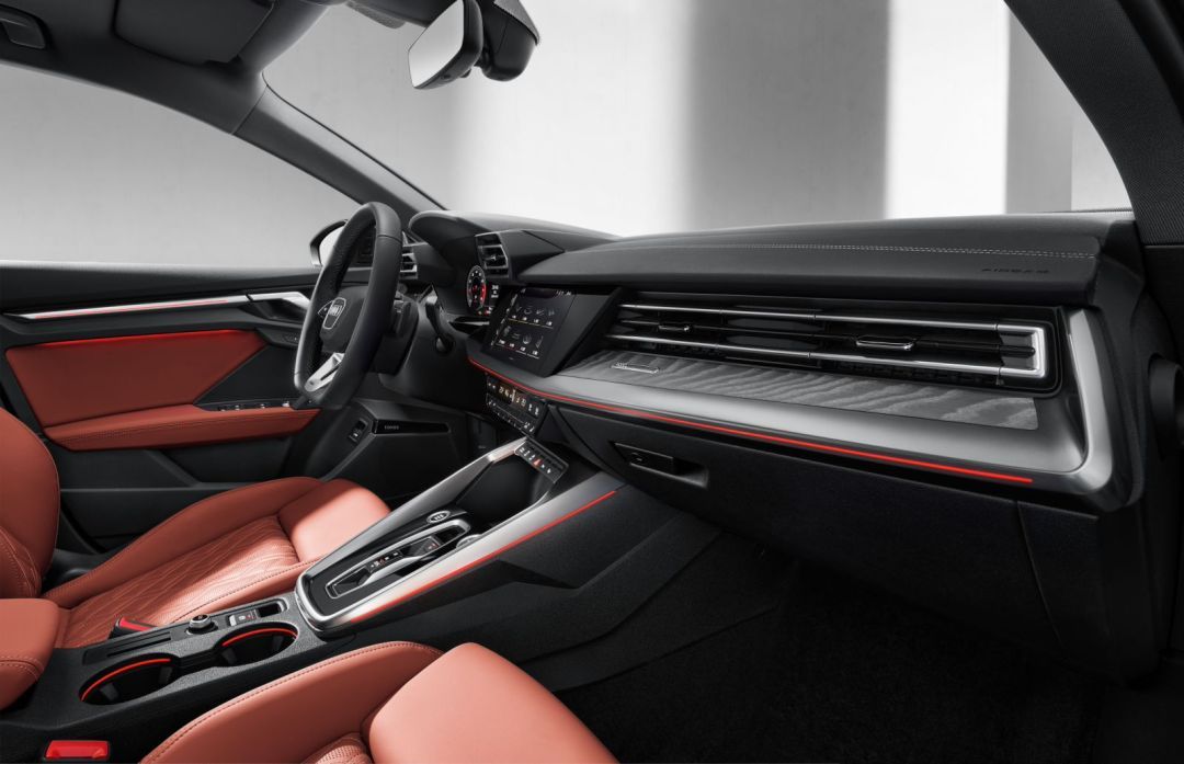 四环“灯厂”在新奥迪A3上首次应用了智趣灯语等灯光科技。新车配备LED透镜式大灯,采用24分区像素式日间行车灯,可自定义选择3种点亮效果与灯语设计,成为用户鲜明型格的个性表达。全新矩阵式LED尾灯呈羽箭造型,由148颗超红光LED组成,可呈现六种箭头形态,支持动画点亮效果。而且,新车配有30色氛围灯,以及标配的前门四环照地灯。