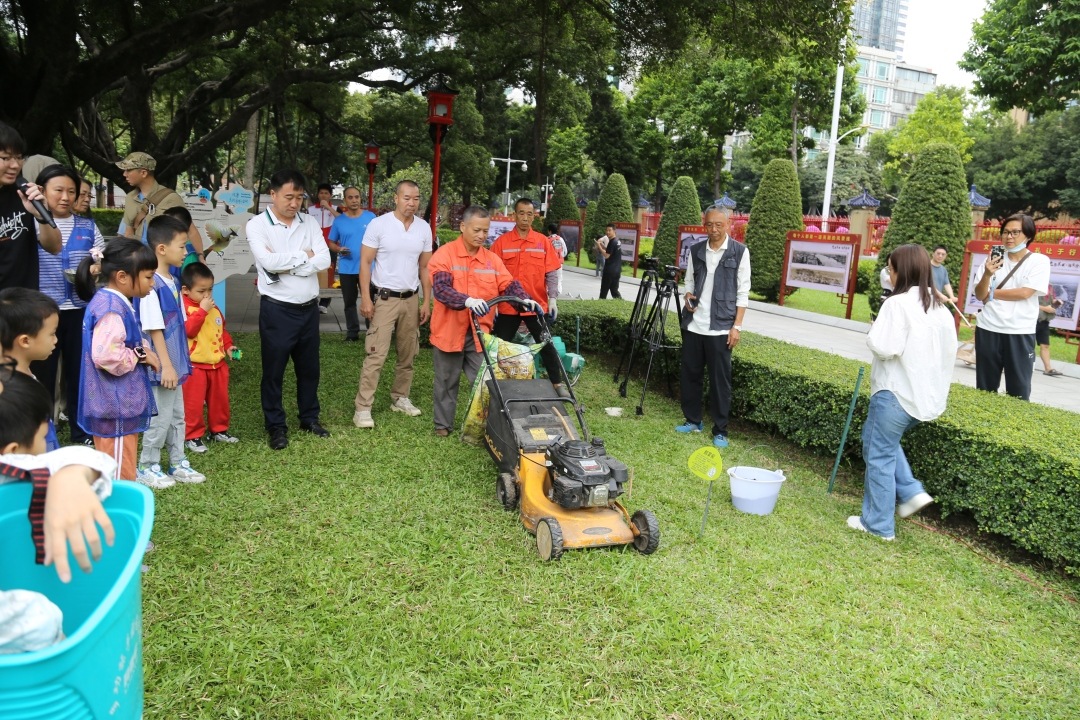 活动现场,孩子们在这片承载着无数历史记忆与市民情感的绿色空间里,跟随自然教育导师体验劳动的乐趣和自然的魅力。自然教育导师给小朋友们上了一节生动的自然教育课。“小朋友,大草坪不够能量过冬了,你们能帮助她吗?”“能!”在一片欢声笑语中,孩子们学习了各种草类植物的生长特点、生态价值以及它们在城市绿化中的重要作用。