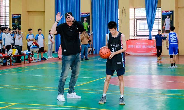 除了分享会,朱芳雨还亲自带领学生们进行了一场别开生面的冠军公益课。在篮球场上,这位CBA历史三分王教授了学生们投三分的基本技巧,亲身示范并和同学们互动了三分比赛。朱芳雨的专业指导和亲切互动,让学生们受益匪浅。