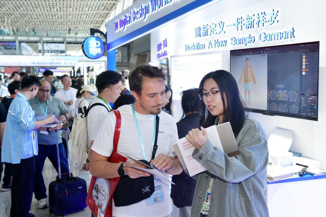 高效便捷的科技产品吸引了众多国内外参观者的眼球,收获了多家企业的咨询和意向合作。“通过一系列的产品和数字化解决方案,Style3D展示了其在服装行业构建的‘AI+3D+AI’的技术整合策略,从前端的设计创意产出到高仿真样衣制作,再到输出效果的精细调整与最终的电商营销”,该公司市场总监赵陈磊告诉记者,这也是一次分享未来服装设计与制造方式的机会。