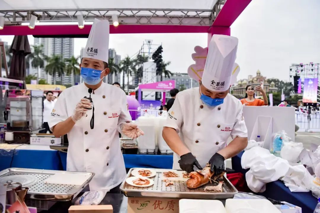作为北京美食代表,全聚德参与了本次美食节活动。在全聚德摊位前,全聚德第七代传人为博主们展示了片鸭,并表示:“吃烤鸭分四个步骤,先赏色,后闻香,三品酥,四尝嫩。”看着皮色金黄,光泽诱人的烤鸭,就垂涎欲滴,品尝之后,达人们表示:“就好像一秒到了北京吃烤鸭,太幸福了!”