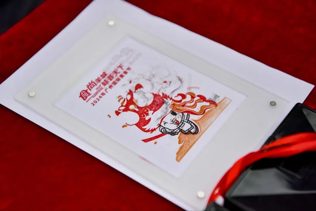 品尝完美食后,达人一行来到了盖章打卡区,一起盖章打卡。据了解,本次活动,2024年广州国际美食节主办方根据岭南文化特色和活动IP设计了两套印章,受到街坊的喜欢,不少集章爱好者都前来打卡。