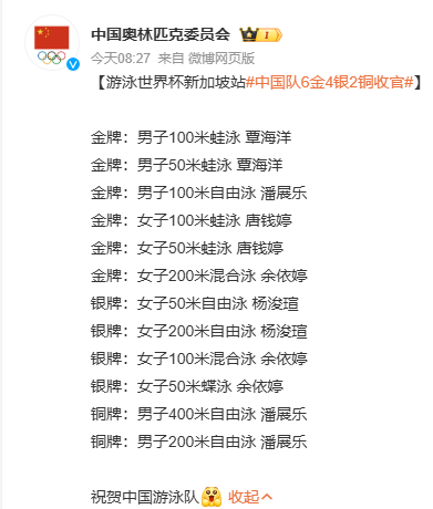 混双决赛,林诗栋/蒯曼3-0战胜黄镇廷/杜凯琹夺得冠军。结束本站赛事后,国乒将参加3日至10日进行的WTT法兰克福冠军赛。另外,北京时间10月31日凌晨,2024年国家和地区奥林匹克委员会协会(国际奥协)颁奖典礼在葡萄牙卡斯凯什举行,马龙获颁杰出运动生涯奖。