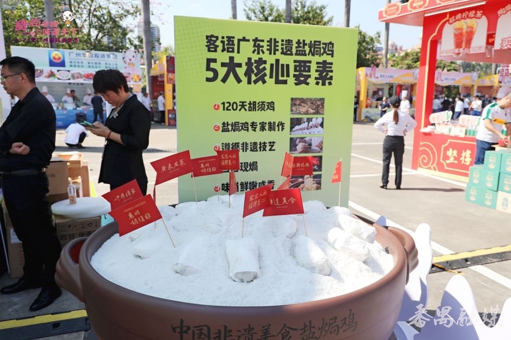 翟丙林是土生土长的河源客家人,对于客家美食文化他如数家珍,“关于盐焗鸡的起源其实是有故事的,相传是客家人从洛阳南迁途中,活鸡不便携带,便将鸡宰杀后放入盐包中,以便长期储存,慢慢形成了今天著名的盐焗鸡。”“八手联弹”中呈现的手撕盐焗鸡的食材也十分讲究,精选120天的惠阳胡须鸡,确保肉质的坚实、脆弹。翟丙林的另一重身份是客家菜连锁品牌客语的出品部中心总监,据他介绍,客语非常重视客家饮食传统的传承创新,如近期曾举办“客守非遗”盐焗鸡传承PK赛,让客家厨师在比拼的氛围中一同精进厨艺,将盐焗鸡制作的每一处细节打磨到精致,助力客家菜、粤菜文化守正创新。