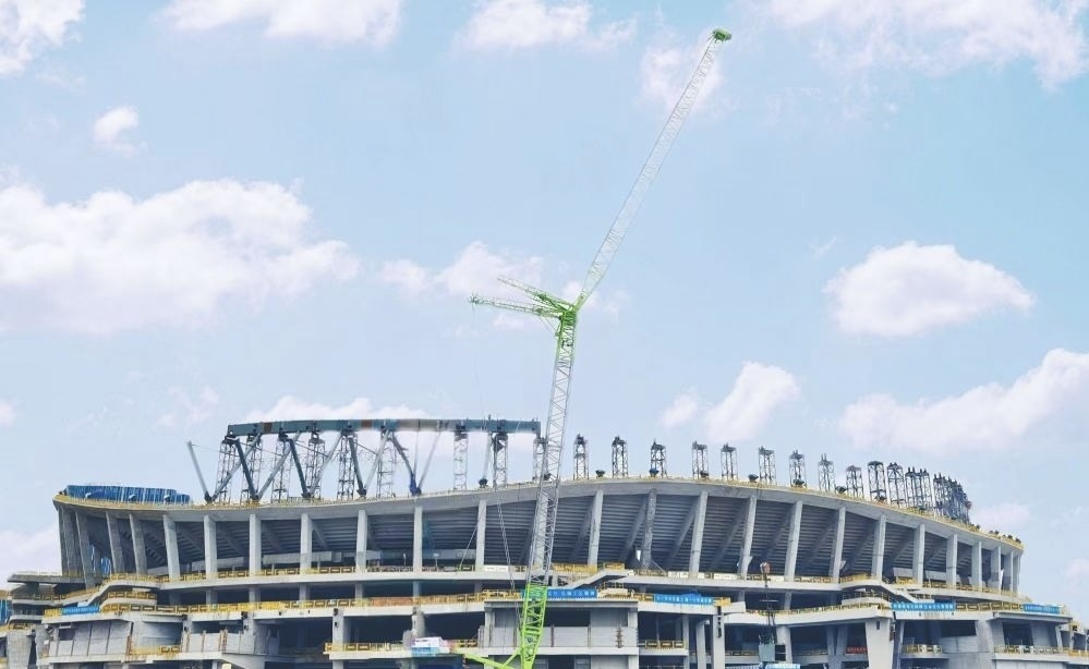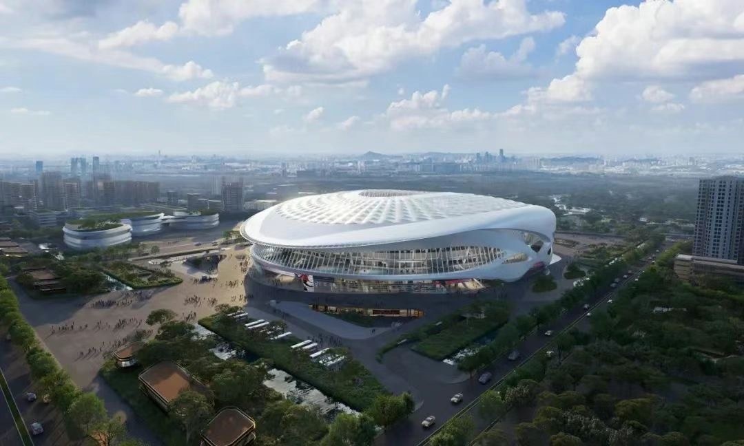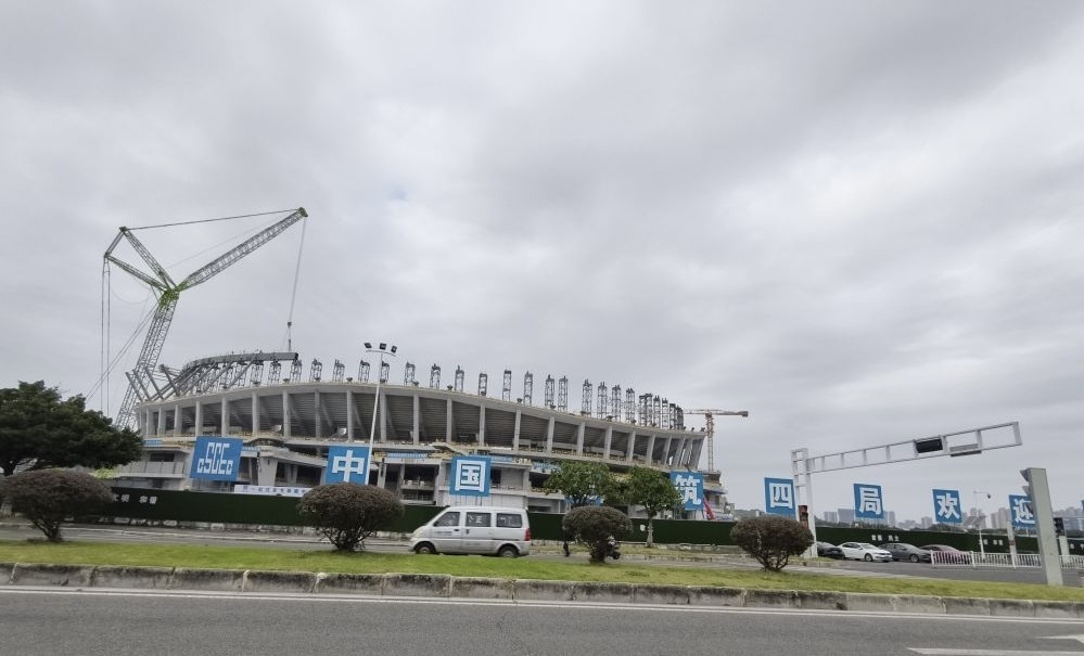 据悉,足球场馆正在进行穹顶及外立面幕墙安装施工,预计将于2025年年底建成并投入运营。