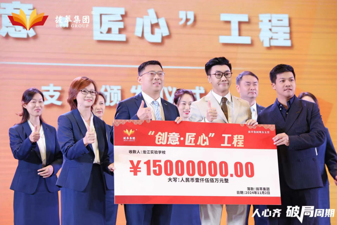 此外,拔萃集团还拨款1500万元,助力龙江实验学校启动“创意·匠心”工程。龙江实验学校计划将资金投入学习场馆扩建、校园环境美化、AI技术引进等方面,切实提升办学品质和行业竞争力。当天,拔萃集团还特邀了集团董事陈健涛,拔萃科技基石投资者、广东东菱凯琴集团有限公司董事长郭建刚等领导嘉宾参加。