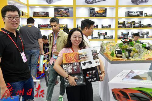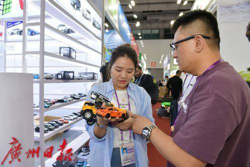 玩具车的展位上吸引了不少客商前来问价。