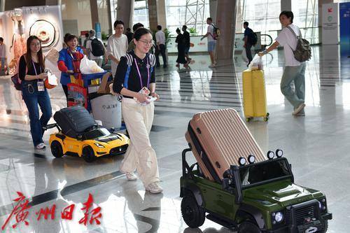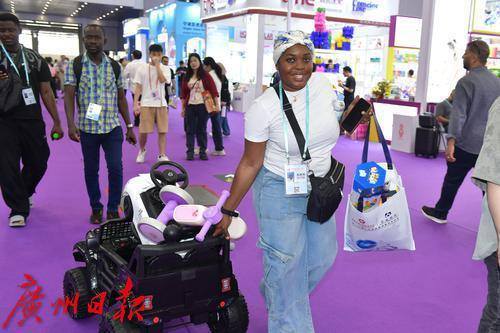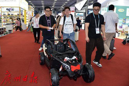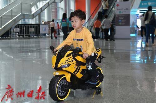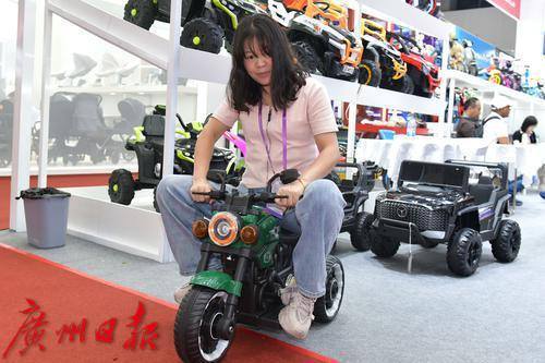 客商遥控着一辆刚买的童车忘展馆外走去。