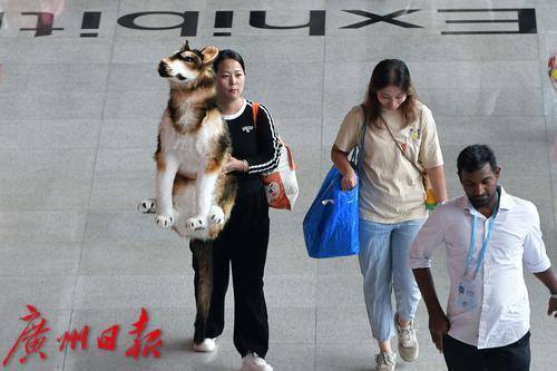 客商抱着刚买的狗模型。