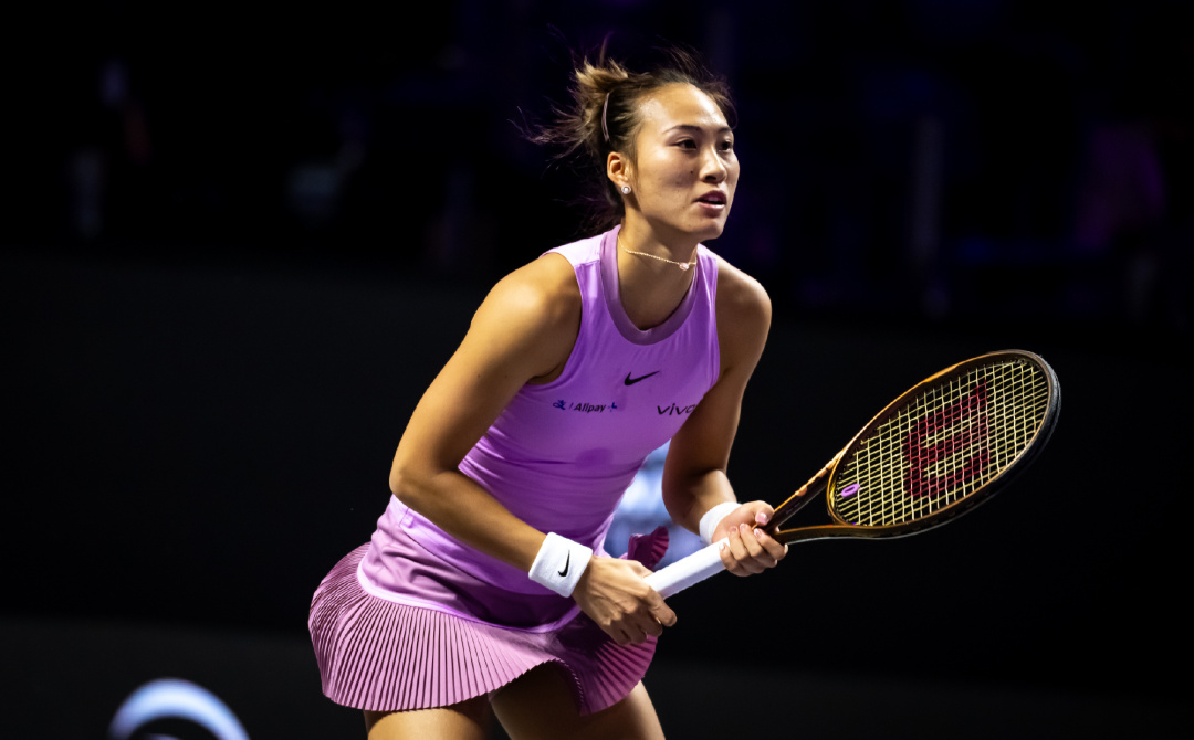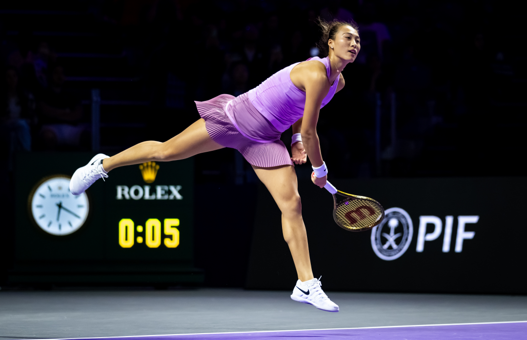 △ 沙特当地时间2024年11月2日,参加2024年WTA年终总决赛首场小组赛的郑钦文。