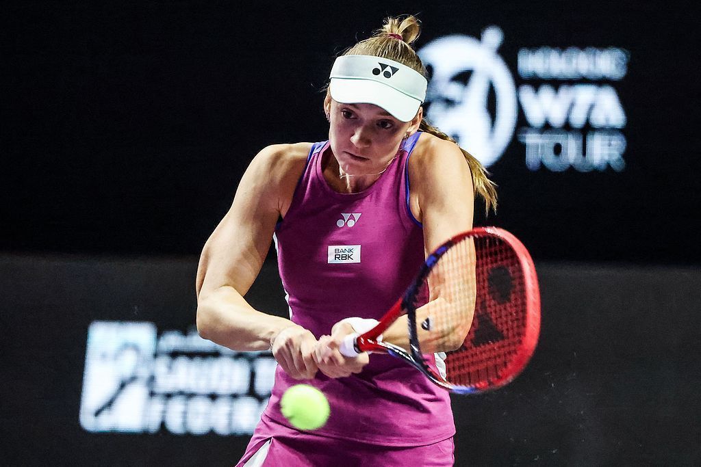 △ 沙特当地时间2024年11月2日,2024年WTA年终总决赛首场小组赛中对战保利尼的莱巴金娜。