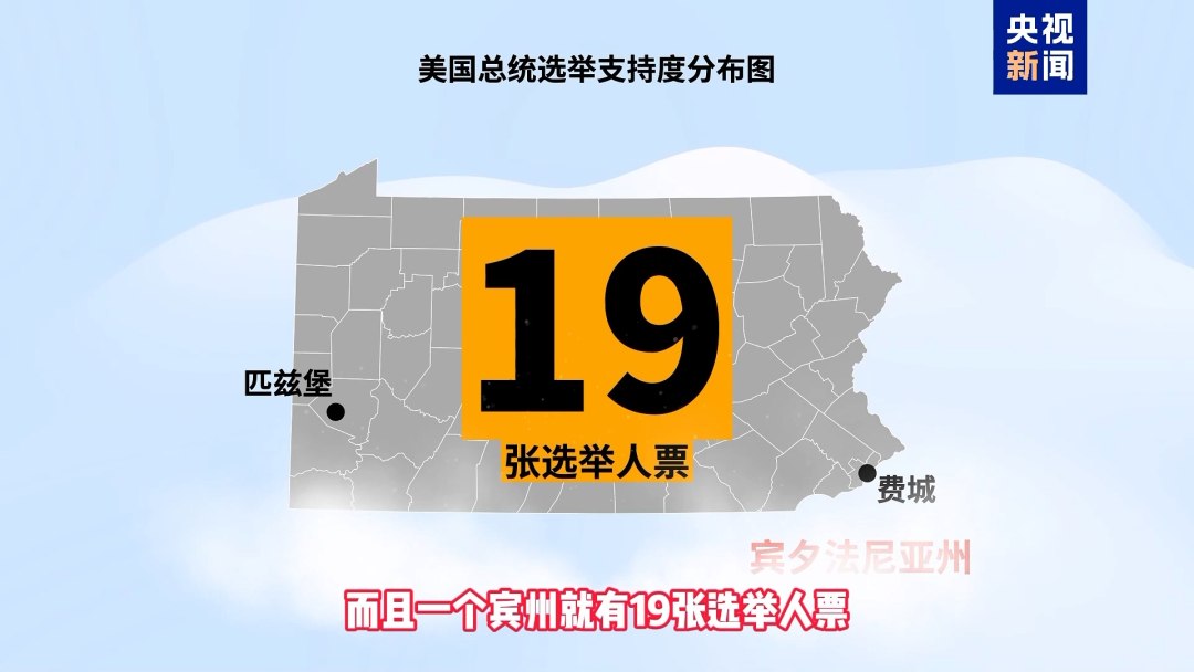 而美国大部分地区从传统上看,民主共和两党的支持度相对明确,比如得克萨斯州支持共和党,加利福尼亚州支持民主党。而剩下的几个州,在历年总统选举中,在两党候选人上来回摆荡,这就是所谓的“摇摆州”。宾夕法尼亚,就是这样一个摇摆州。不但摇摆,而且一个宾州就有19张选举人票,因此,宾州成了两党都“输不起”的地方。
