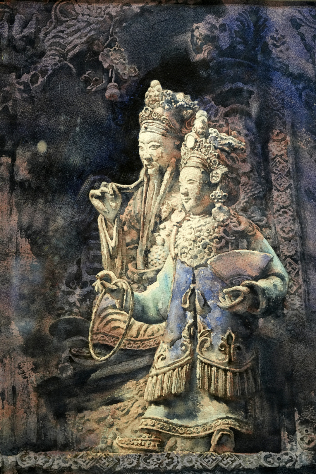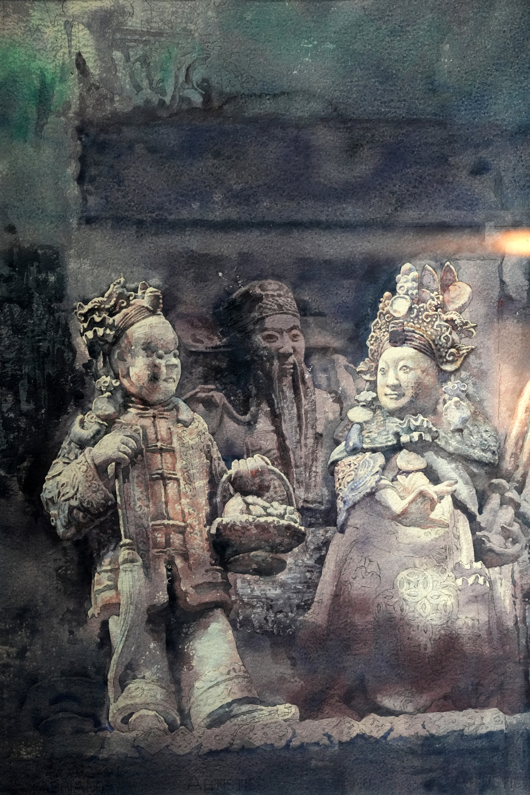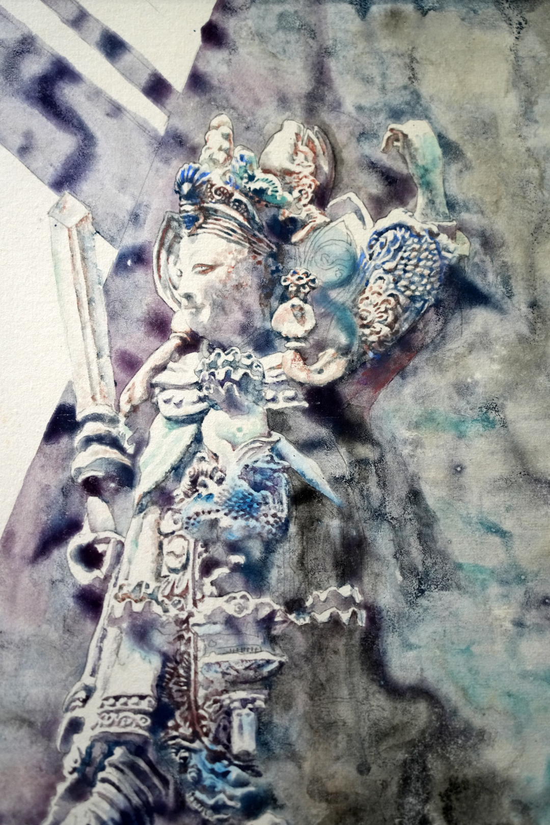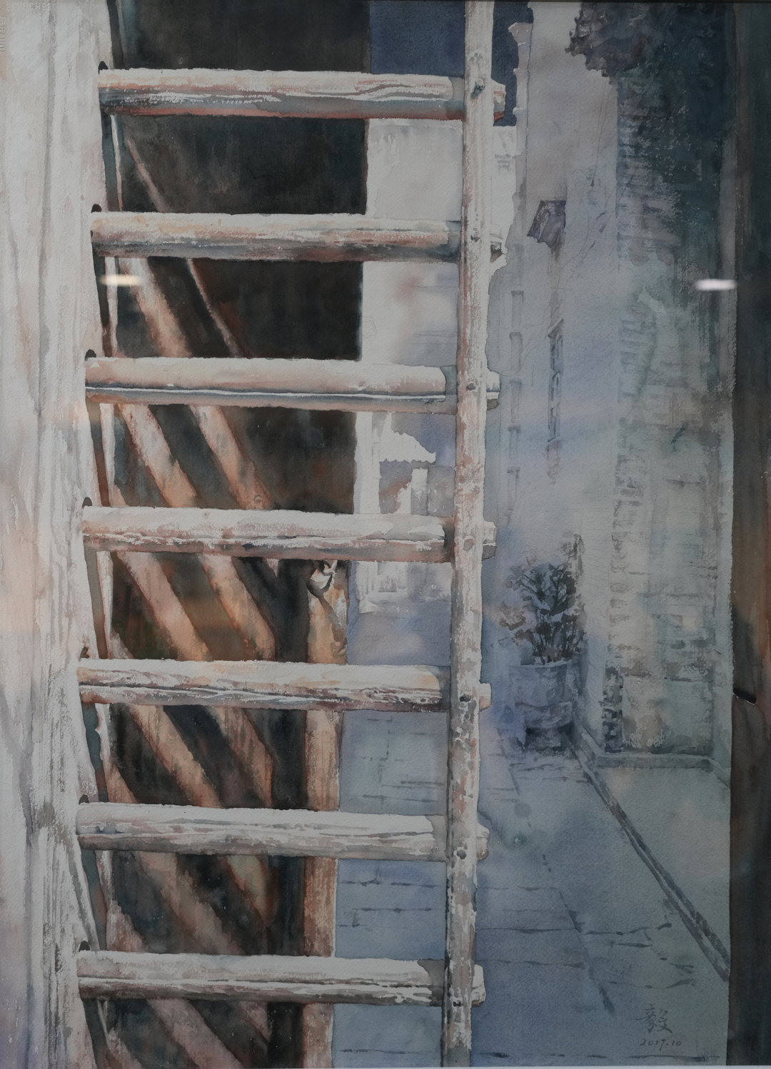 从最初的追求写实到后来结合敦煌壁画等技法摸索出带有国画意味的画面效果,近些年更是投身著名画家郭子良门下,钻研如何把水彩画和中国写意画融合,不拘泥于材料以及画种的界限,呈现出令人耳目一新的绘画面貌。