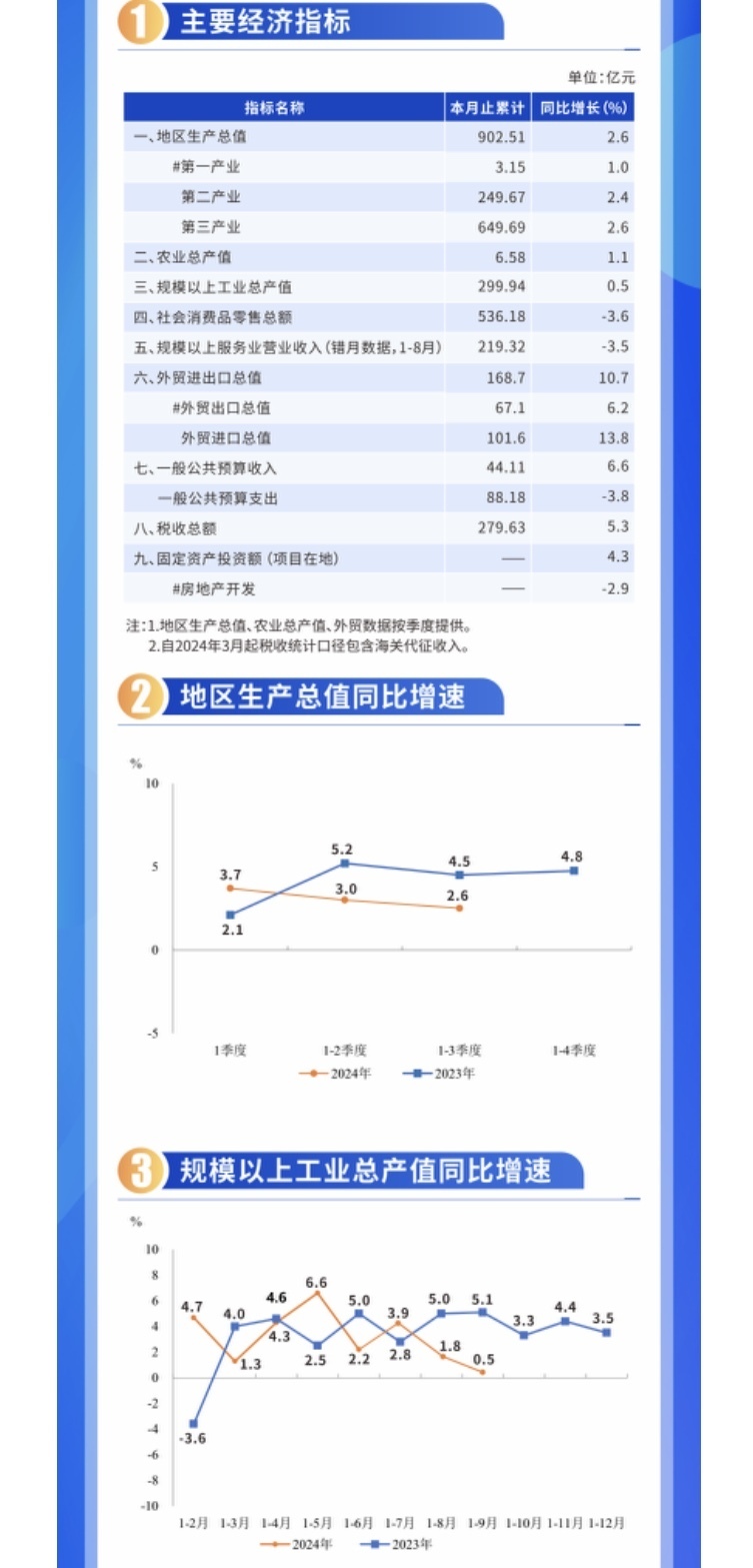 根据广州市地区生产总值统一核算结果,2024年前三季度,荔湾区地区生产总值902.51亿元,按不变价格计算(下同),同比增长2.6%。其中,第一产业增加值3.15亿元,同比增长1.0%;第二产业增加值为249.67亿元,同比增长2.4%;第三产业增加值649.69亿元,同比增长2.6%。