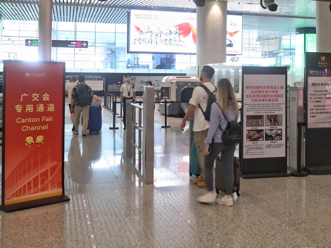 广州海关所属广州白云机场海关设置广交会来宾便捷通道,保障展客商高效通关。