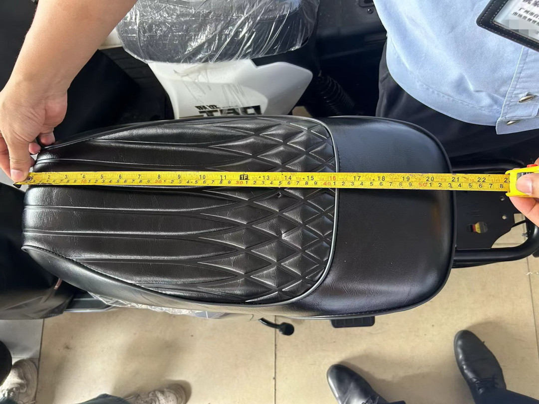 发现该违法线索后,白云区市场监管局执法人员立即与公安部门开展联合侦察,很快锁定了商家线下销售门店。经现场检查发现,店铺内有1个非原厂配置坐垫、靠背、中置箱等配件尚未安装出售,店主谎称上述配件是网购的私人物品,发布的视频纯属为了引流而故意夸大宣传,矢口否认涉嫌非法改装销售电动自行车行为。