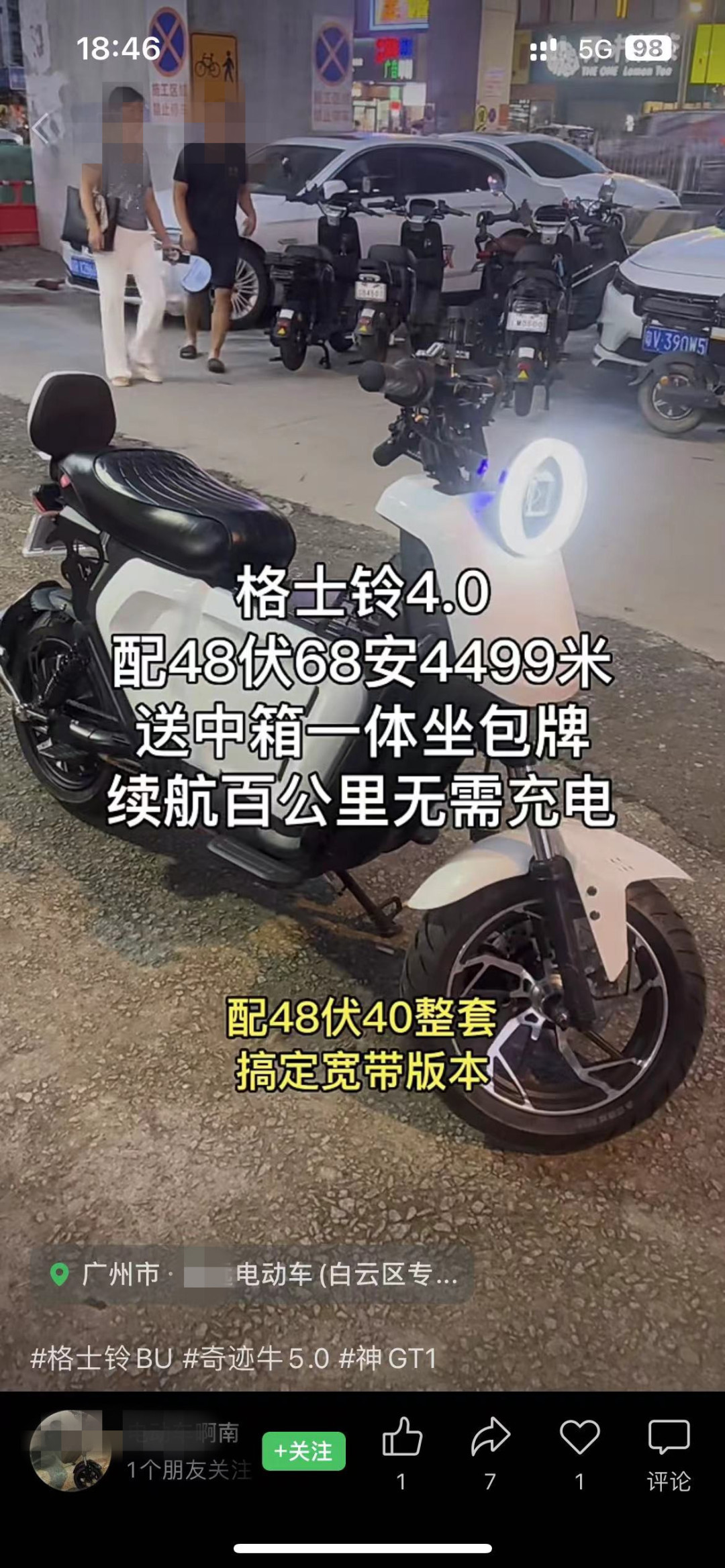 “兄弟们,这款电动自行车经过我们改装后,时速可达到60迈以上,有百公里续航,座椅加长、储物区加大,你要改哪里就能改哪里,全包全搞定,价格只要1699元。”近日,正在开展网络巡查的白云区市场监管局执法人员通过“改装”二字定位到一段视频,该视频发布于某平台视频号,并吸引了多个有购买意向的网友围观、点赞、留言。
