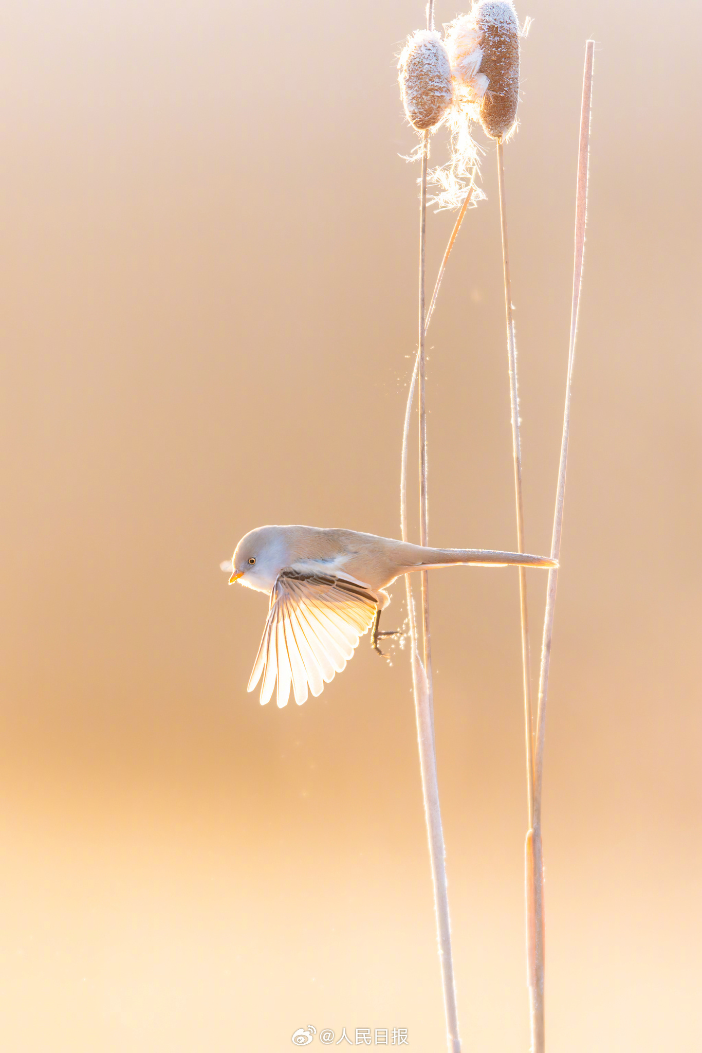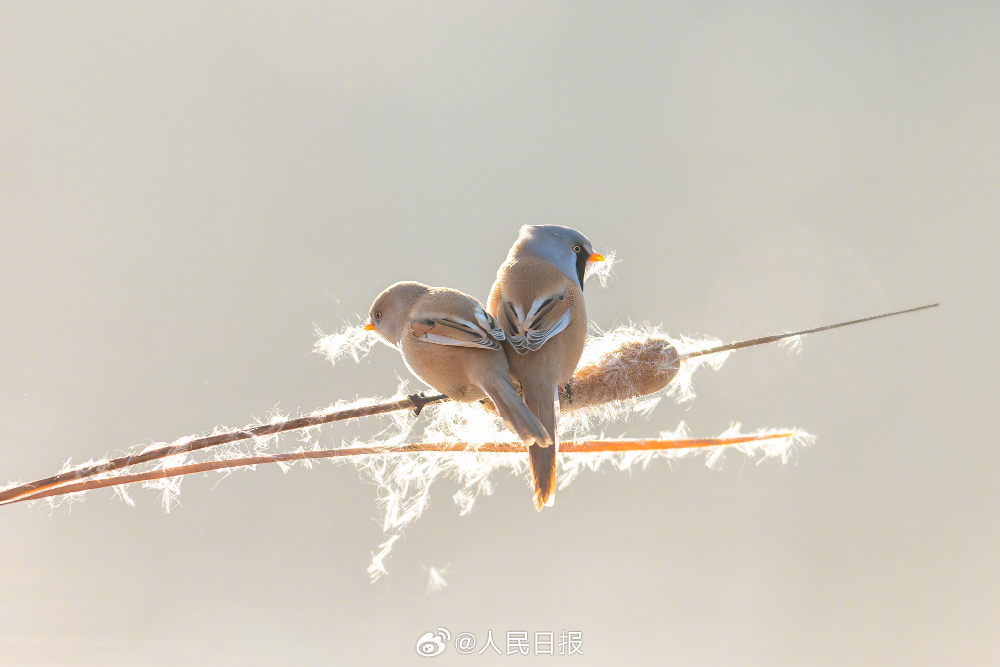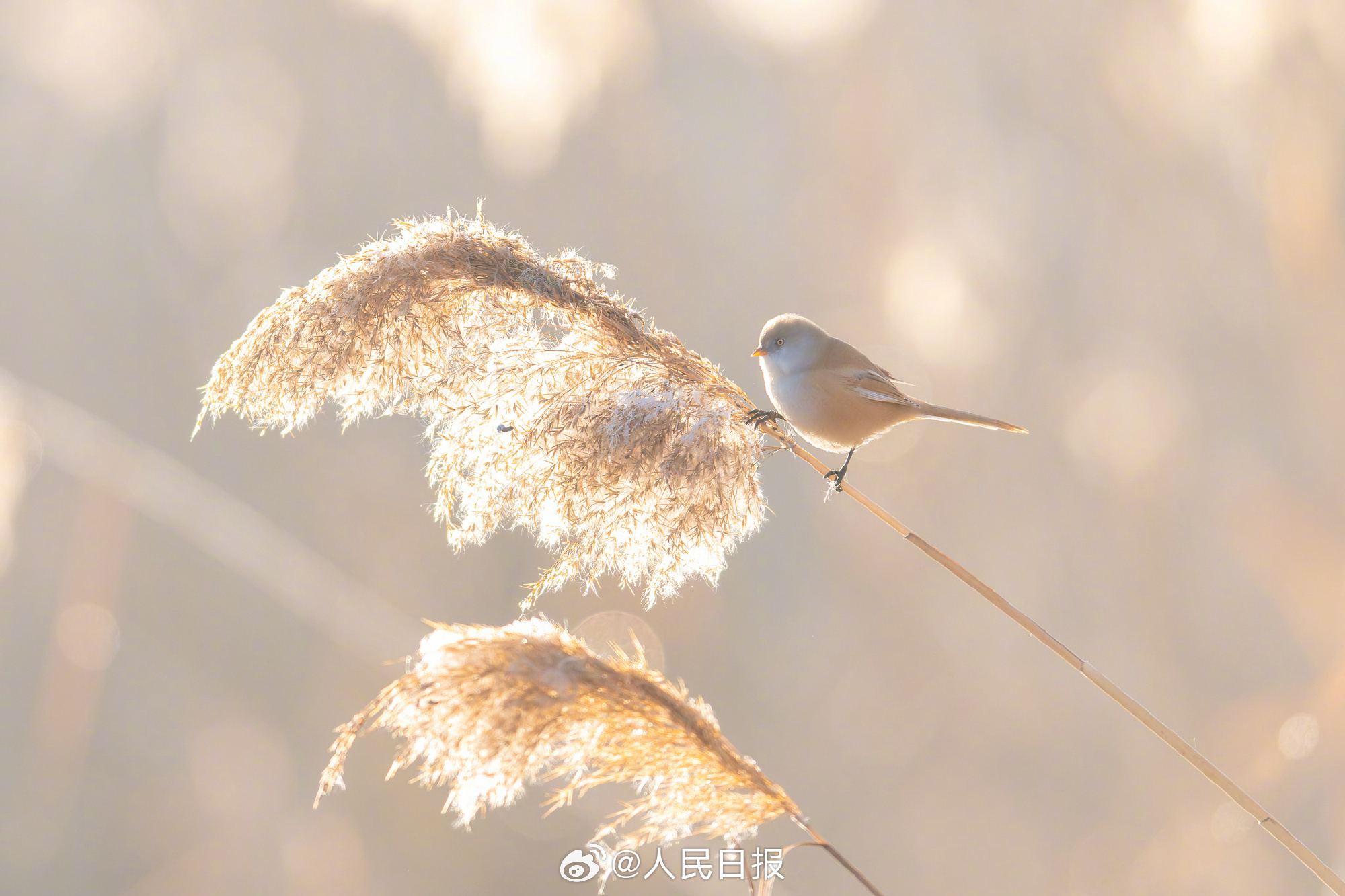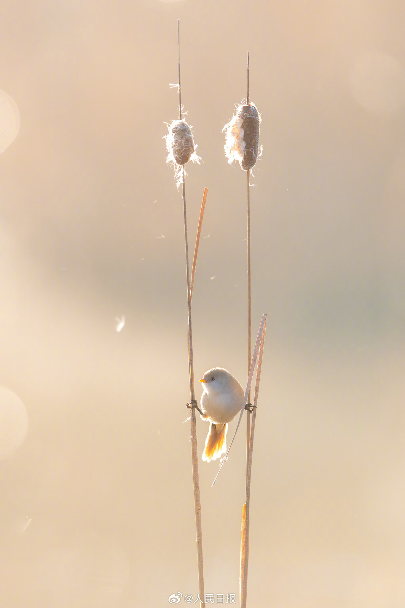 11月2日,黑龙江大庆龙凤湿地国家自然保护区,小鸟在芦苇荡里觅食、打逗、嬉戏。小鸟在芦苇枝头上演高难度动作!