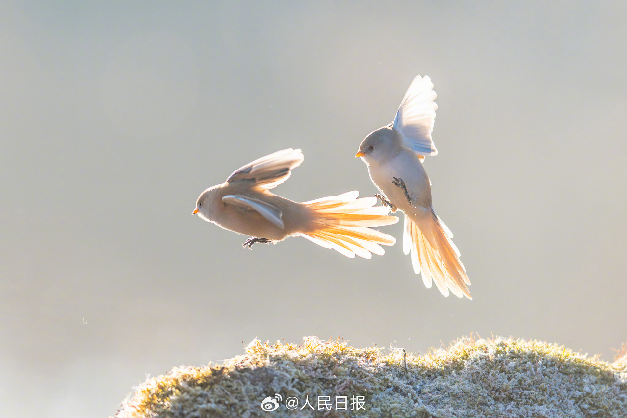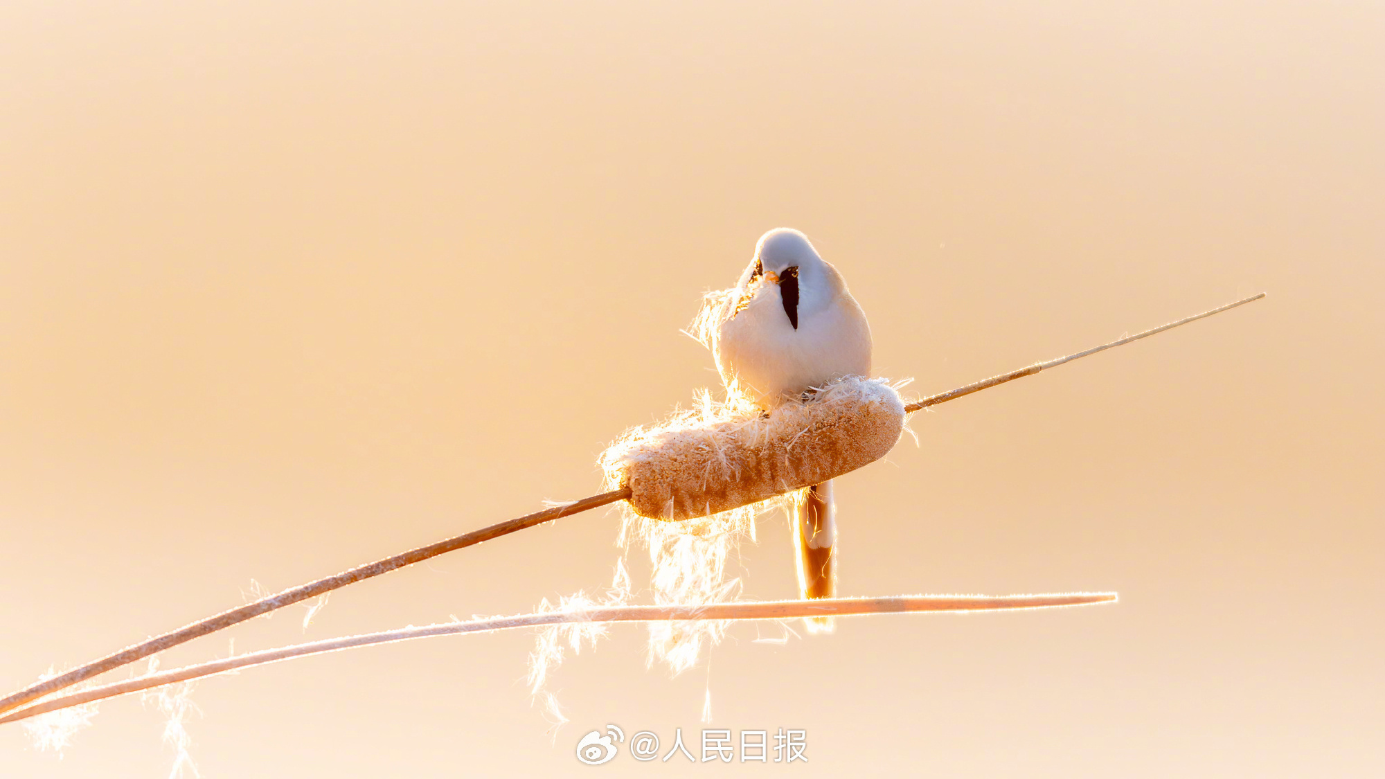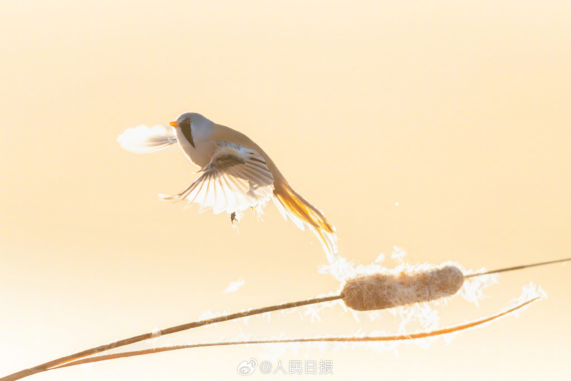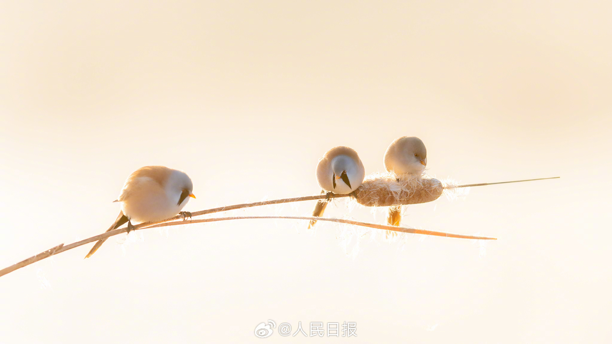 11月2日,黑龙江大庆龙凤湿地国家自然保护区,小鸟在芦苇荡里觅食、打逗、嬉戏。小鸟在芦苇枝头上演高难度动作!