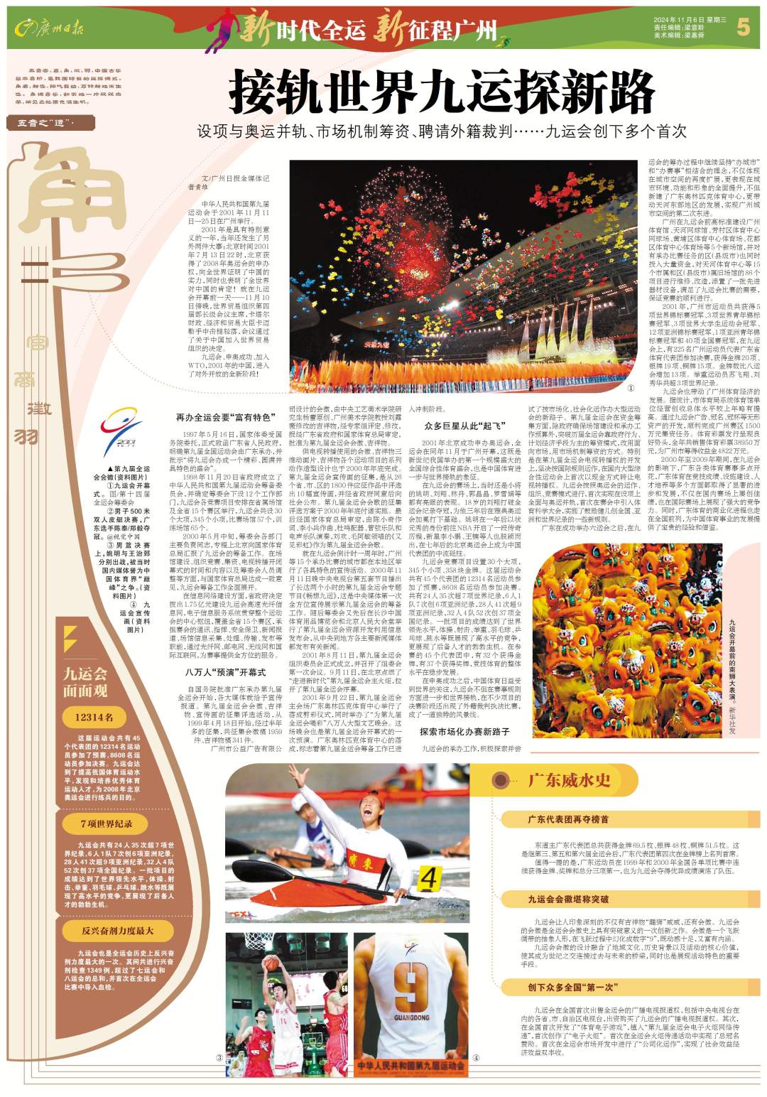 2001年北京成功申办奥运会,全运会在同年11月于广州开幕,这既是新世纪我国举办的第一个规模盛大的全国综合性体育盛会,也是中国体育进一步与世界接轨的象征。