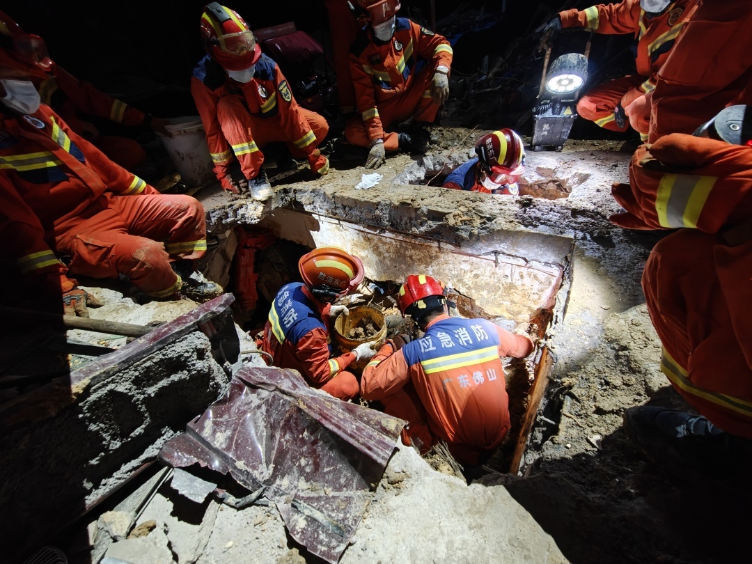 “目前了解到里面还有三名被困人员,我们已经根据他们家属当时的场景还原,初步确定了在二维平面水平方向大概位置,现在通过从上往下垂直搜救和侧面突进的方式,共同向他们靠近,争取最快找到被困人员。”6月16日广东省梅州市遭受特大暴雨,佛山市消防救援支队的100余名消防指战员,第一时间赶赴增援灾区,搜救被困和失联人员。在蕉岭镇南磜镇多宝村的救援中,消防救援人员通过直升机先后投入50余名指战员执行救援任务,先后营救4名被困人员,在山腰处的一处由山体滑坡造成的民房坍塌处,冒着二次滑坡的危险,日夜奋战搜救失联人员。