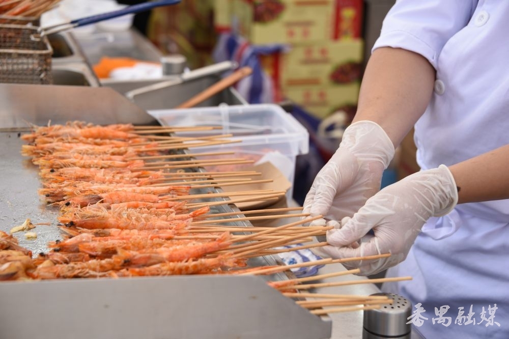 广州酒家大厨现场烤制避风塘酥炸黄金虾