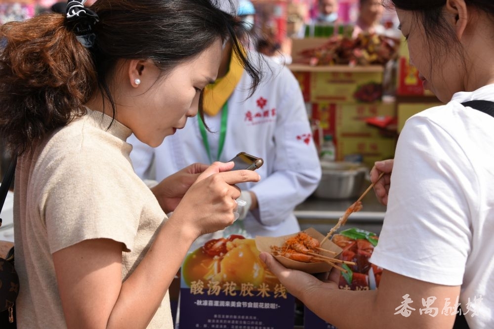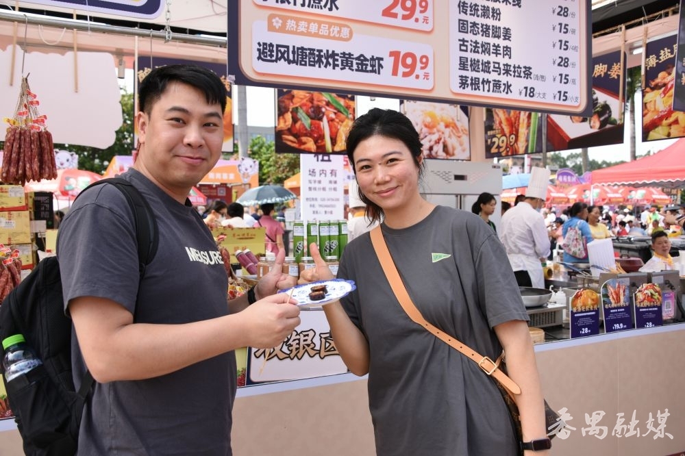 本届美食节注重“美食+文化+时尚”的深度融合,广州酒家的展位以独特的岭南风貌成为一道亮丽的风景线。柜台上堆积如山的腊味传递出秋季丰收的喜悦,新国潮、广府文化符号贴满墙壁,“虾饺仔”和“包大叔”卡通形象憨态可掬,现炒美食镬气十足,引得食客和小朋友们纷纷驻足围观。