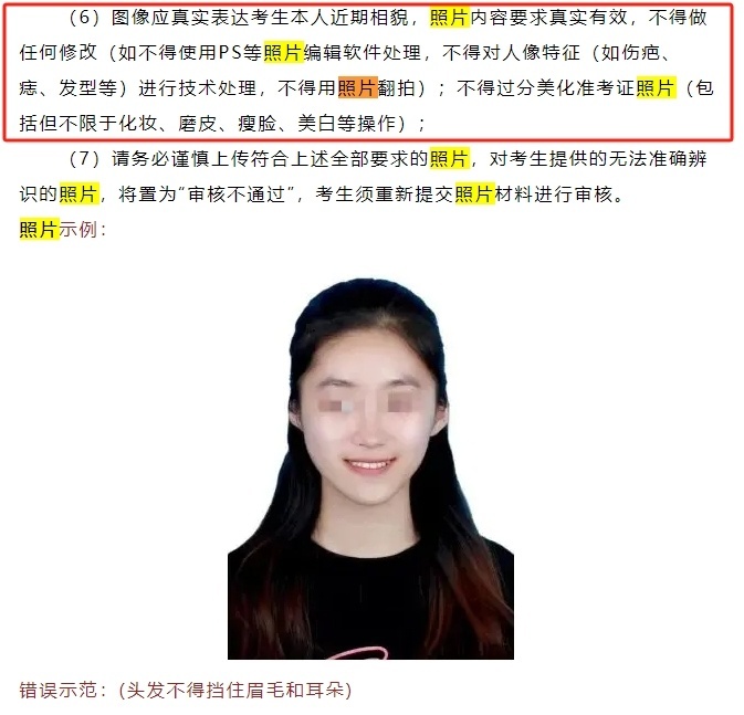 不仅是准考证,其他重要证件的照片也被要求“不得使用美颜照片”。