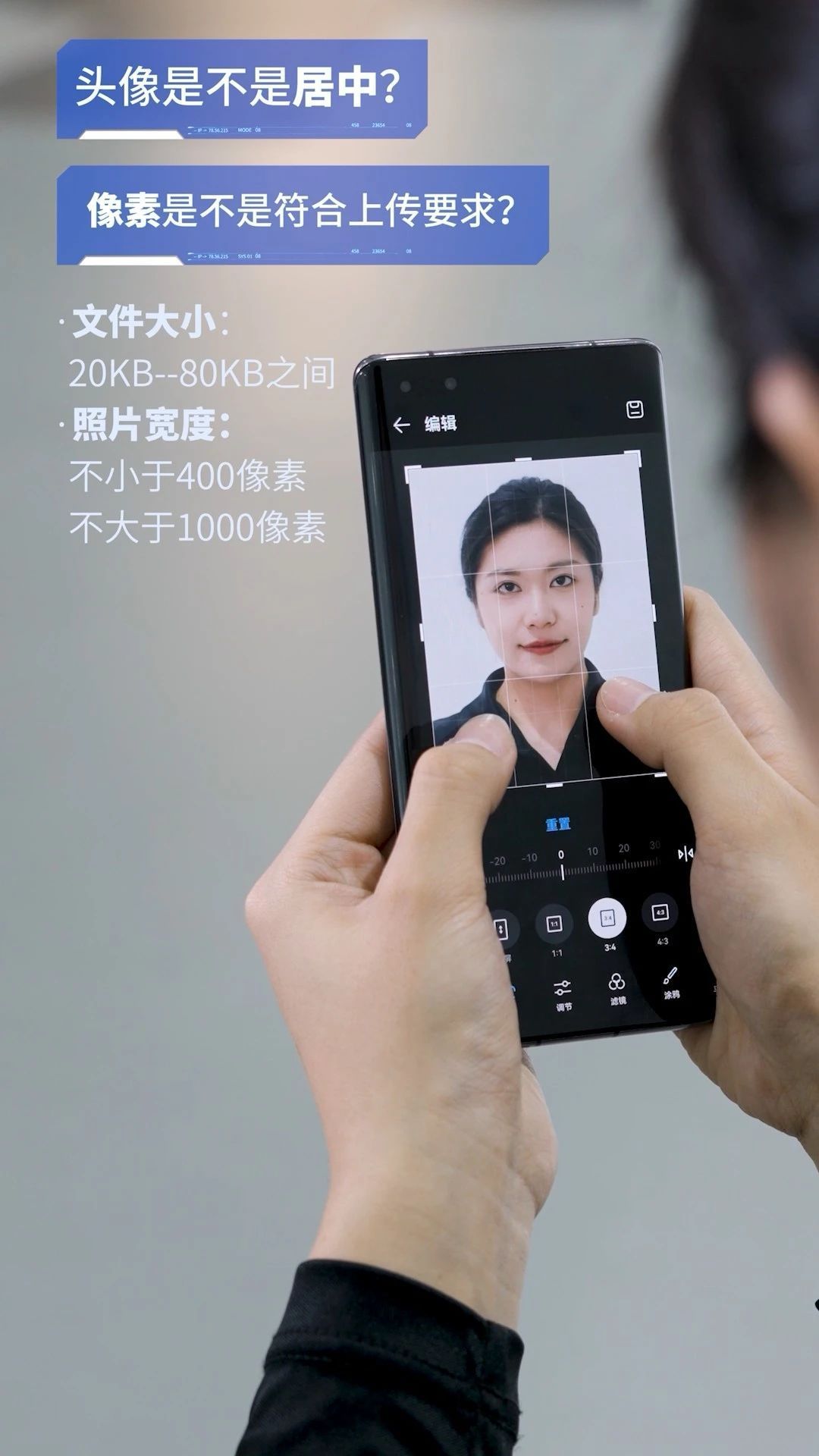拍摄完成后,还需要检查头像是否居中,照片像素是否符合上传要求。