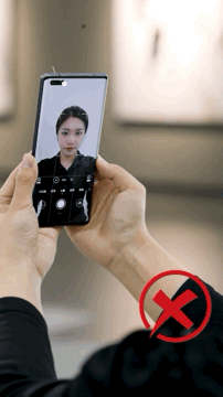 拍摄时,请端正坐姿,保持平视,记得露出眉毛、眼睛、耳朵,笑不露齿。