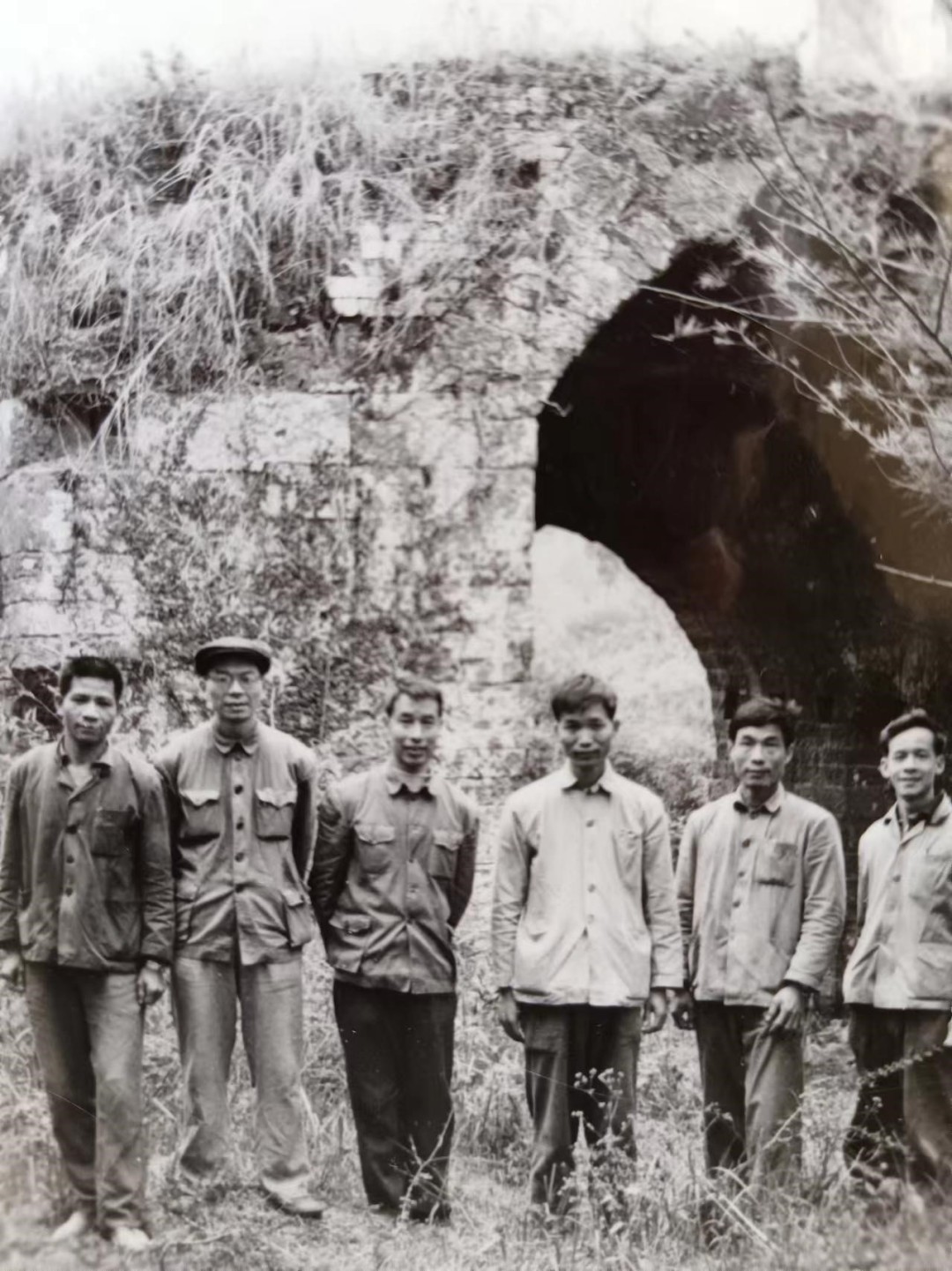 上世纪80年代初,谭国超(左三)在番禺南沙公社沙田区采访,一起下来的有当年的番禺新闻秘书李鉴潮(左一)、邝耀权(右二),其余皆为公社干部。谭国超供图