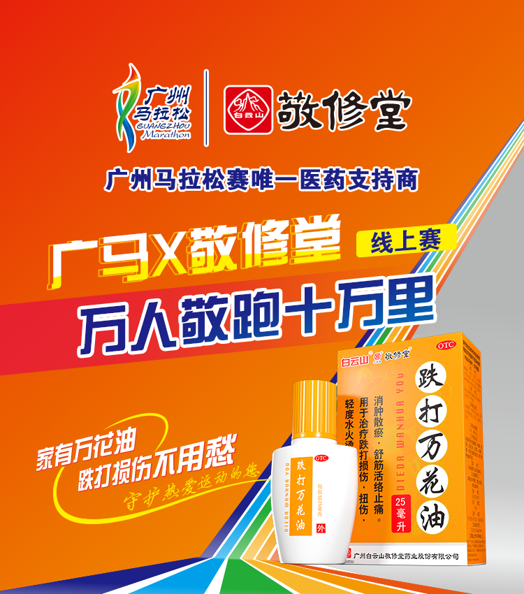 白云山敬修堂作为广马的唯一医药支持商,深知每一位跑者对赛道的渴望与热爱,特别联合广东省内16家连锁大药房开展“万花助力广马行,万人敬跑十万里”终端推广活动,邀您再次启程,追逐梦想,抽取最后广马参赛名额!