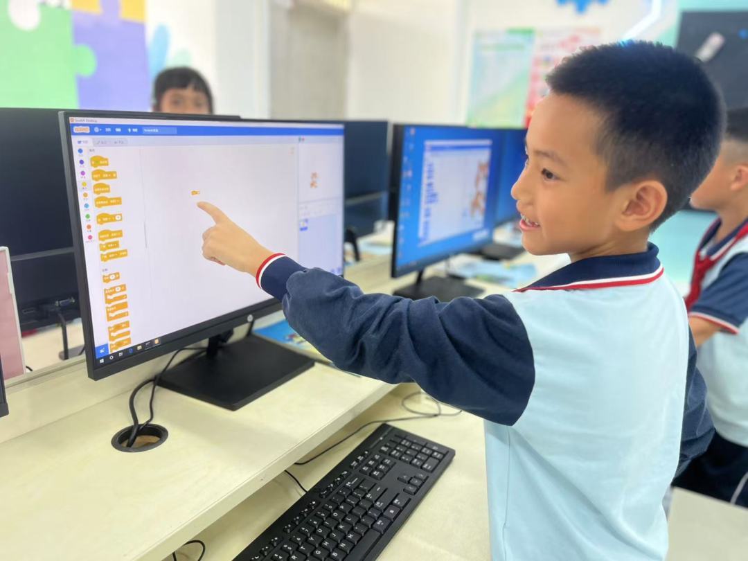 苏泉月介绍,该校经历了三年的数字化转型工作,近年来聚焦数字赋能教育教学这一核心,从硬件和软件两个维度进行全面升级。在硬件建设方面,学校更新了32间教室的一体机,建立了1间电脑室和1间人工智能室,为学生创造互动性更强、生动有趣的学习环境。