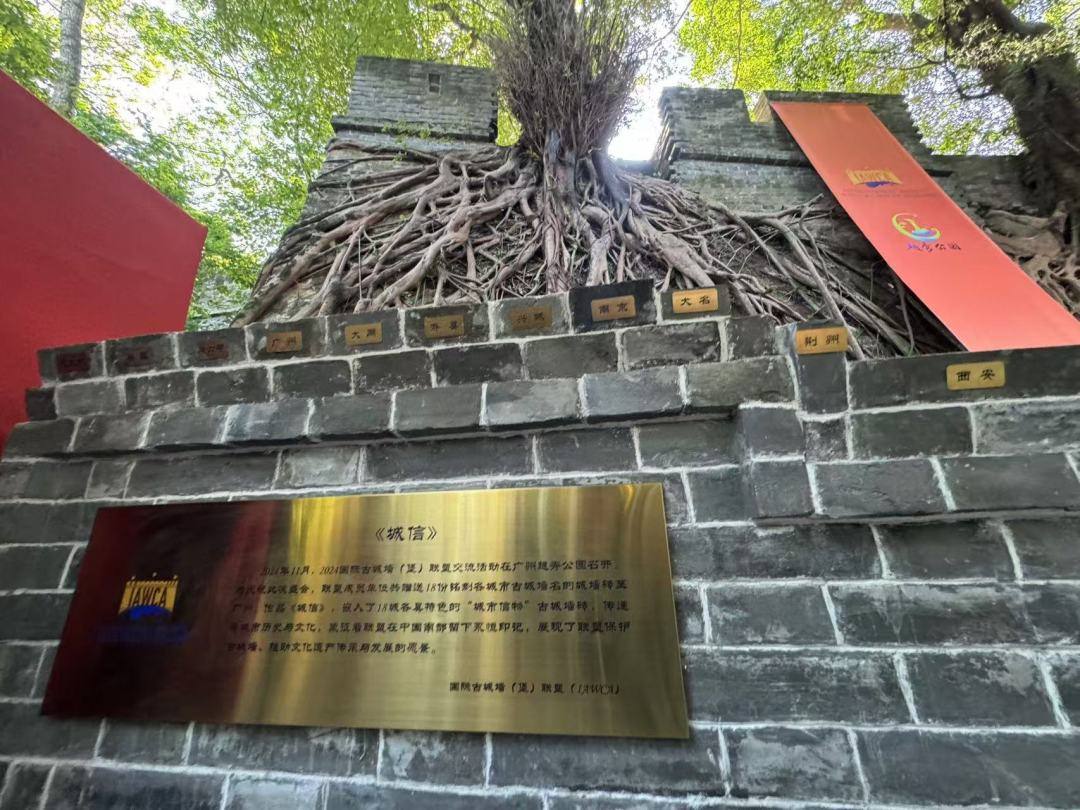 备受瞩目的联盟品牌标志《城信》也于当天揭开了神秘面纱,由各城市联盟成员单位赠送的18份铭刻古城墙名的城墙砖一一在列,这份跨越山海的礼物将永久地留在越秀山上,展现了联盟保护古城墙、推动文化遗产传承与发展的愿景。