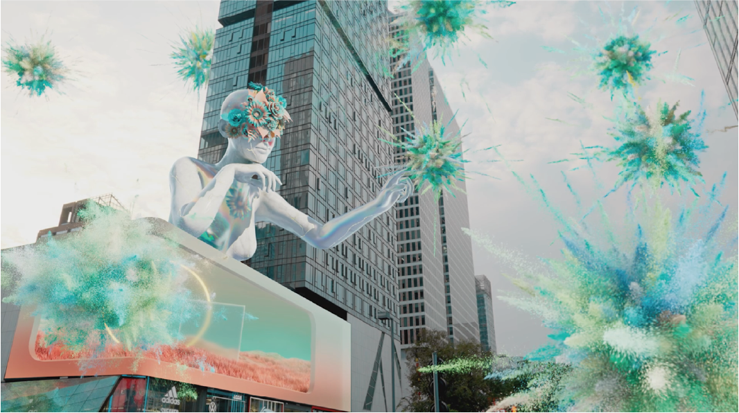 来自成都的燧石行科技以3D数字艺术内容为核心,聚焦新技术、新媒介、新场景,通过探究科技与艺术的有机融合,将天马行空的创意有效落地,为大众视觉的趣味互动需求提供载体,市民穿行其作品间,不仅可以获得别样的空间体验,也在了解、拍照等过程中参与了整个空间作品的最终艺术呈现。暨南大学郑晓君新媒体工作室、广州海豚动漫以及北京光影冉动科技、广州灵科时代的作品也具有异曲同工之妙。这些作品中,艺术家不再是唯一的创作主体,观众也是不可替代的艺术创作者。