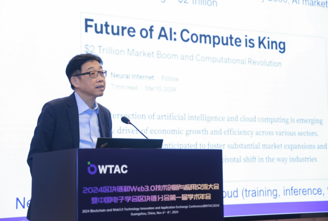 大会嘉宾欧洲人文和自然科学院院士,香港工程科学院院士曹建农作《Web3 Approach to Decentralized and Collaborative AI》的特邀报告,系统介绍了去中心化计算和人工智能基础设施的最新研究进展,并展示了基于DCEAI平台构建的Web3协同生态系统,为更加高效地推进人工智能应用程序开发和部署提出路径建议。