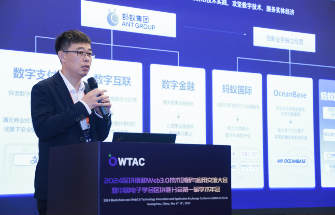 大会嘉宾蚂蚁数科技术总监、区块链基础技术及隐私计算技术负责人魏长征作《区块链和隐私计算技术:融合发展新方向》报告,分享如何围绕区块链技术构建可信连接,促进数字资产流转,推动产业协作,打造可信数实孪生技术体系,并对隐私计算、可验证计算、区块链安全等多个前沿方向的最新技术成果进行重点介绍。